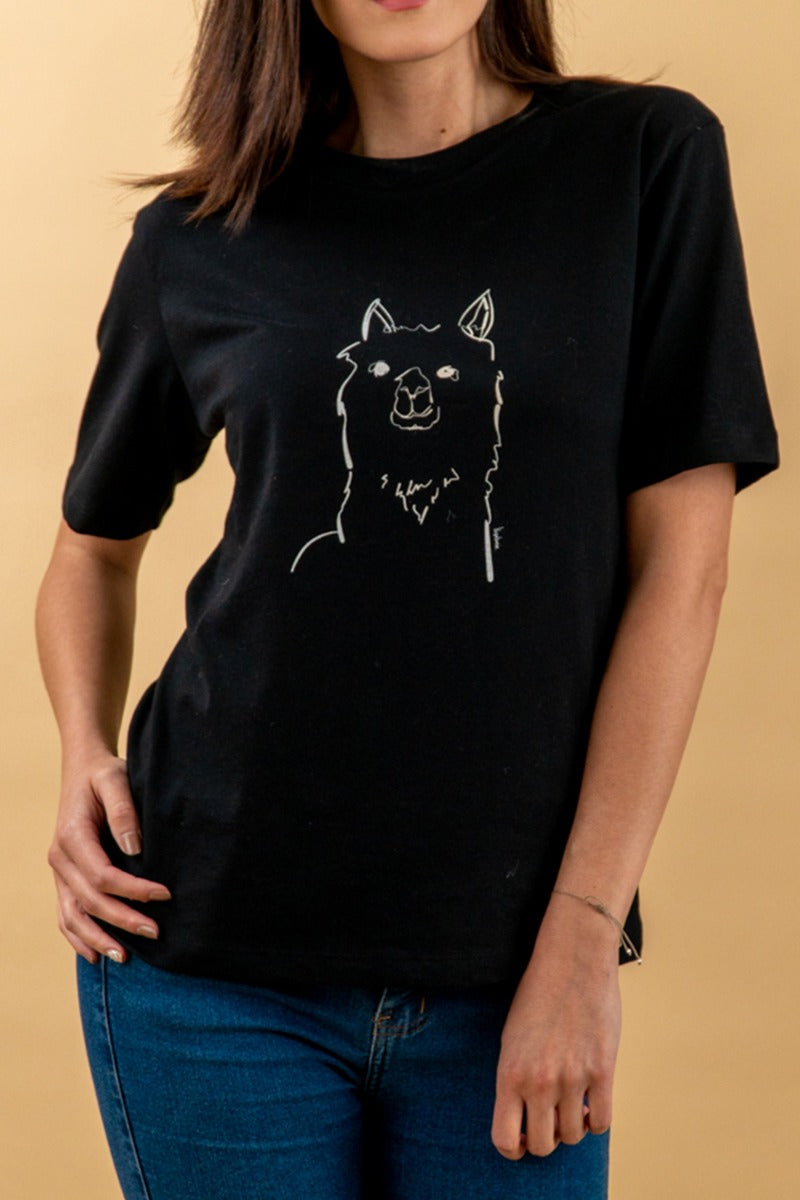 Beautiful unisex T-shirt with the sketch of an Alpaca face by Peruvian Artist Lia Valencia. Made from 100% Peruvian Pima Cotton, known as the softest and finest cotton in the world. A great everyday T-shirt: Comfortable, great quality and durability.