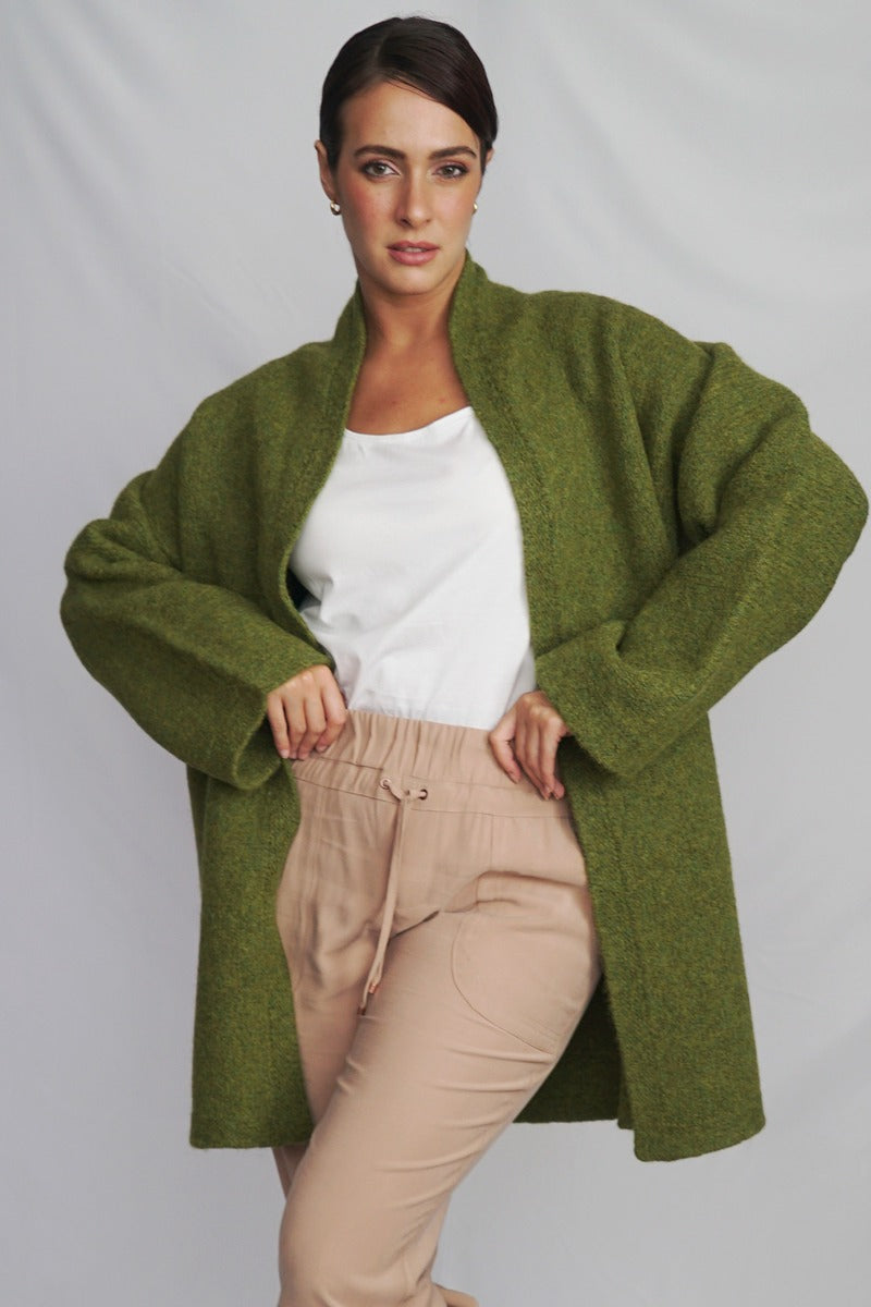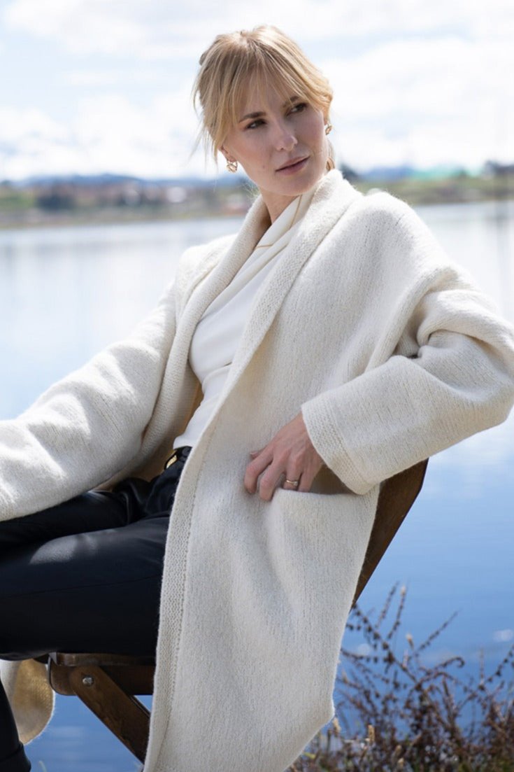 Wrap yourself in the warmth, comfort, and style of the Belen Alpaca Long Cardigan, a versatile knitwear piece designed to keep you warm and stylish throughout the seasons. Crafted from a luxurious alpaca blend, this cardigan/coat is elegant and sophisticated, making it perfect for both casual and dressier occasions.