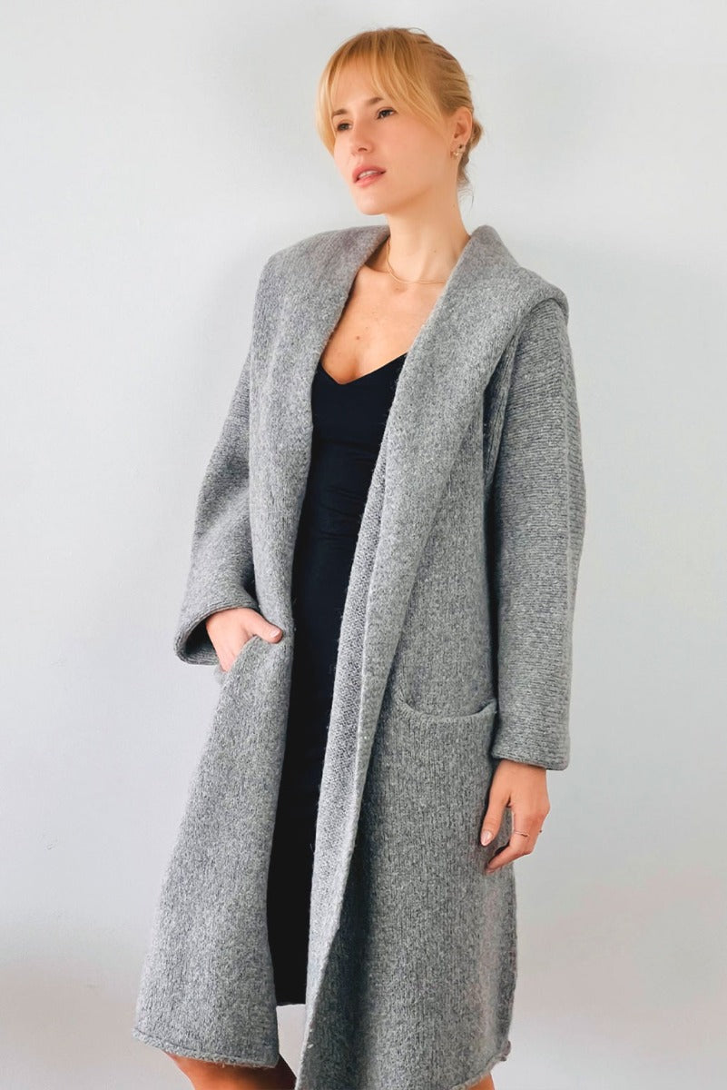 Wrap yourself in the warmth, comfort, and style of the Belen Alpaca Long Hooded Cardigan, a versatile knitwear piece designed to keep you warm and stylish throughout the seasons. Crafted from a luxurious alpaca blend, this cardigan/coat with a hood is elegant and sophisticated, making it perfect for both casual and dressier occasions.