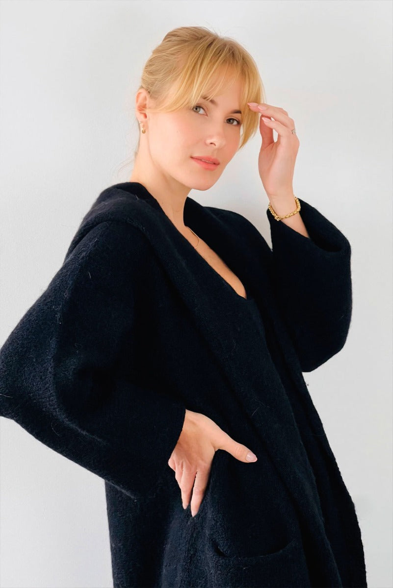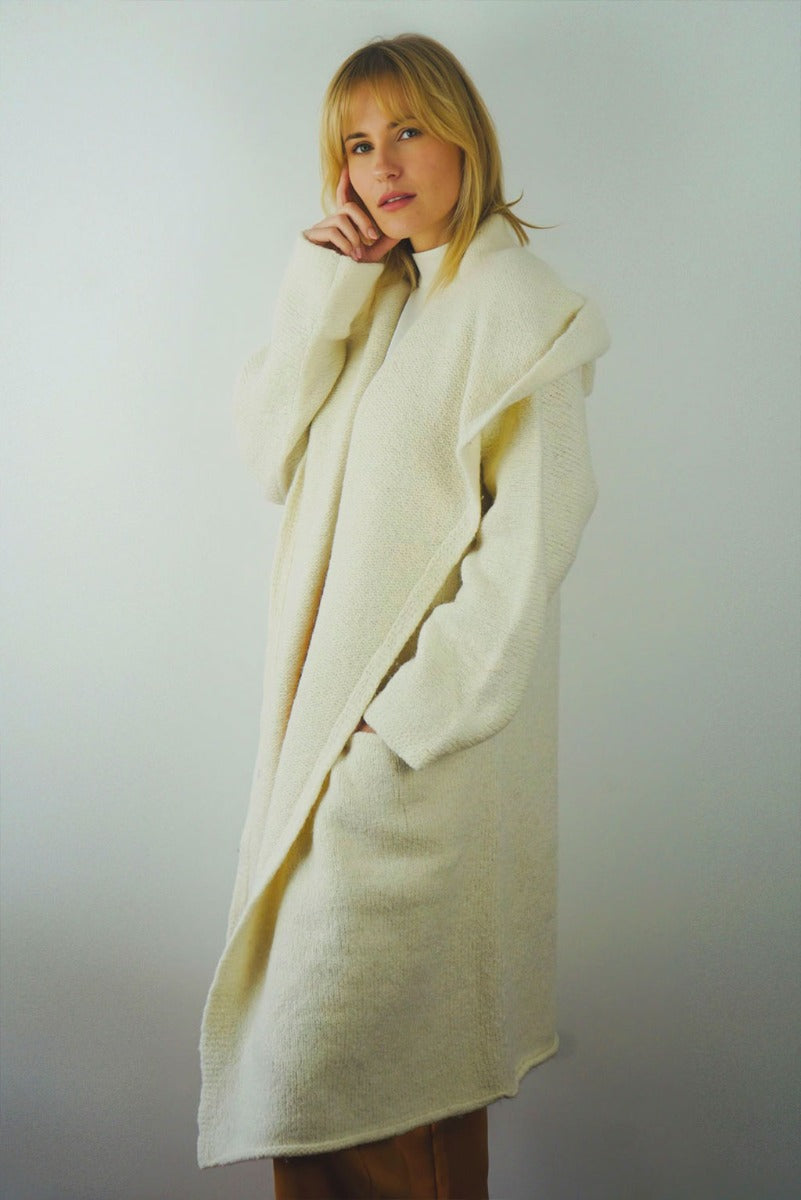 Wrap yourself in the warmth, comfort, and style of the Belen Alpaca Long Hooded Cardigan, a versatile knitwear piece designed to keep you warm and stylish throughout the seasons. Crafted from a luxurious alpaca blend, this cardigan/coat with a hood is elegant and sophisticated, making it perfect for both casual and dressier occasions.