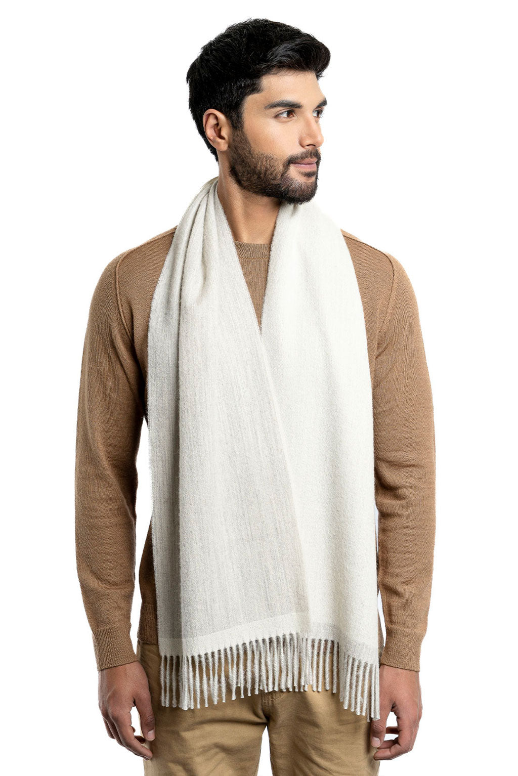 Introducing the versatile and stylish Eco Double Face Baby Alpaca Scarf. With its light grey and white color scheme, this scarf offers a contemporary twist on classic elegance. The soft, luxurious texture ensures comfort, while the fringed ends add a touch of sophistication. Ideal for both casual outings and formal occasions, this scarf effortlessly enhances any ensemble.
