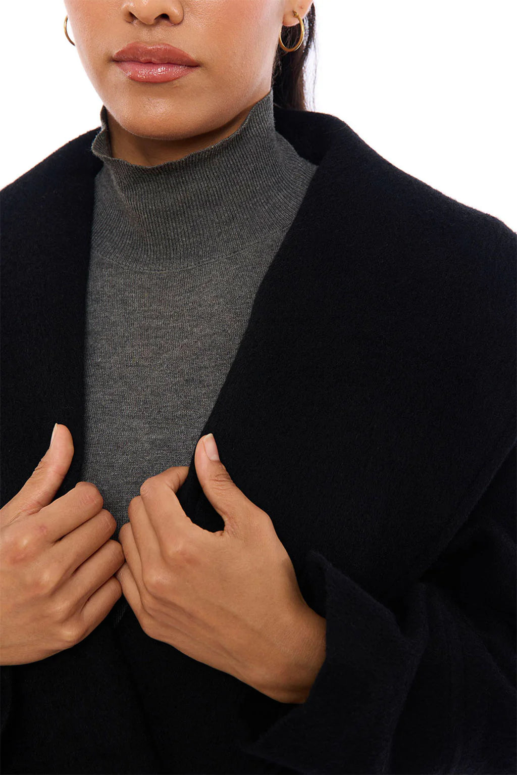 - Wide shawl collar for an elegant drape
