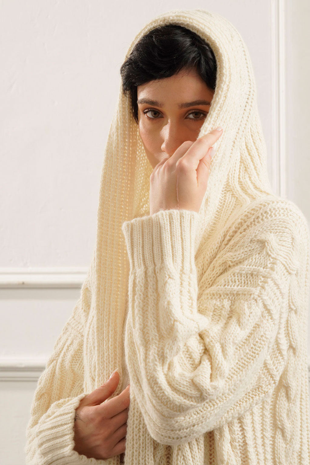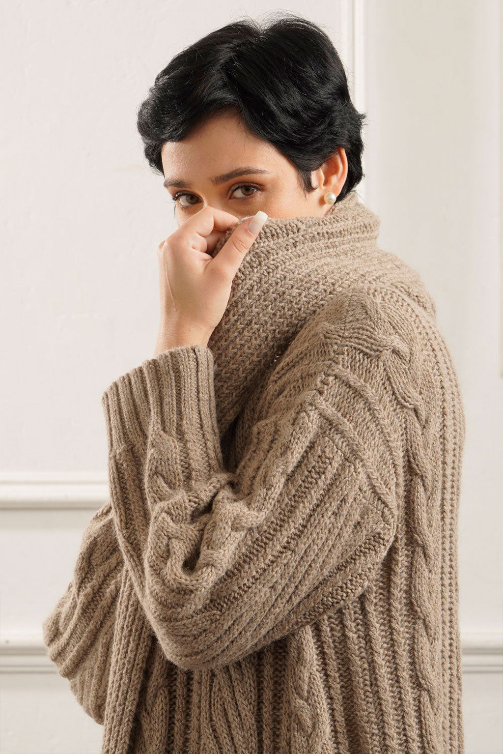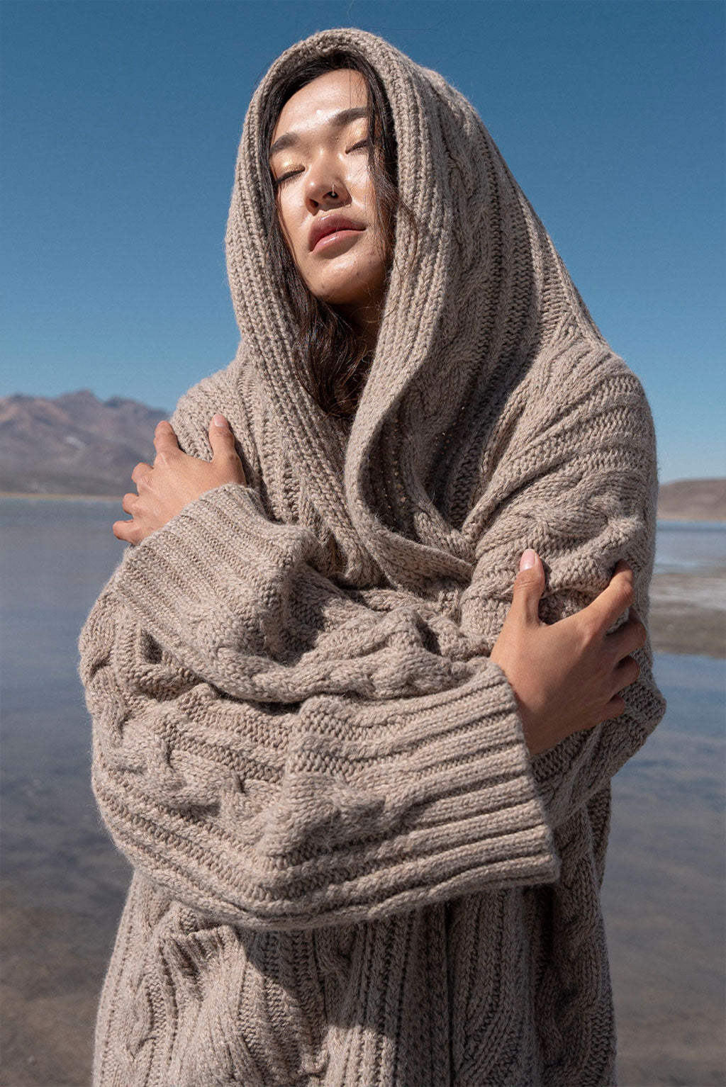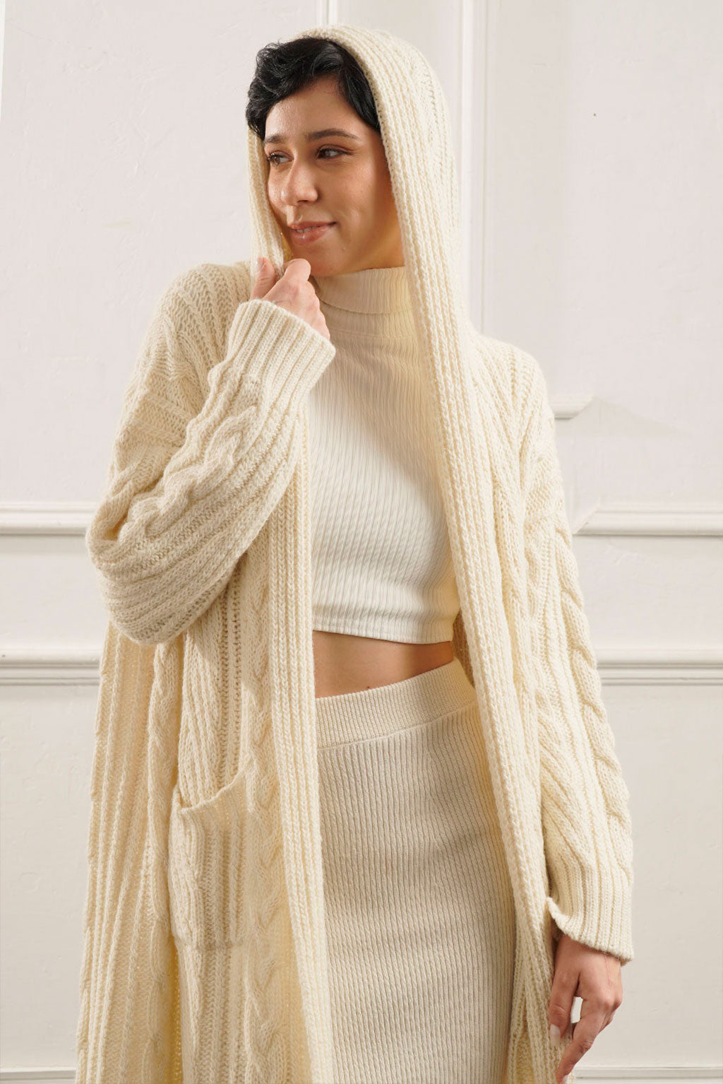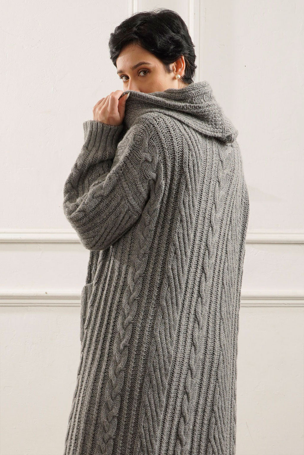 The Kendall Long Cable Knit Cardigan embodies effortless style and warmth. Its flowing silhouette and rich cable design offer a chic, timeless look, perfect for layering. Crafted from 100% Baby Alpaca, this cardigan promises a soft, luxurious feel that will keep you cozy without sacrificing elegance. A versatile addition to any wardrobe.