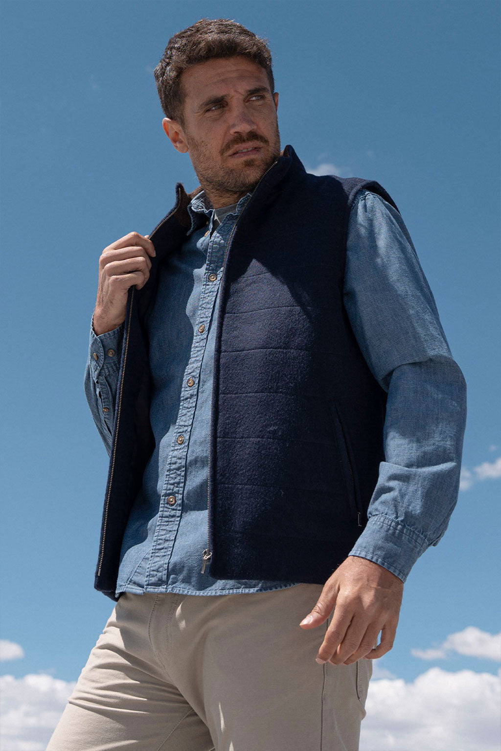 Modern vest in quilted look made from luxurious and super soft Baby Alpaca. Full zipper and angled pockets. This is an absolute staple for your Fall/Winter wardrobe. Wear it over a button-down shirt or sweater in the Fall. Or wear it as an extra layer under one of our Alpaca coats or jackets for extra warmth on a cold Winter day.