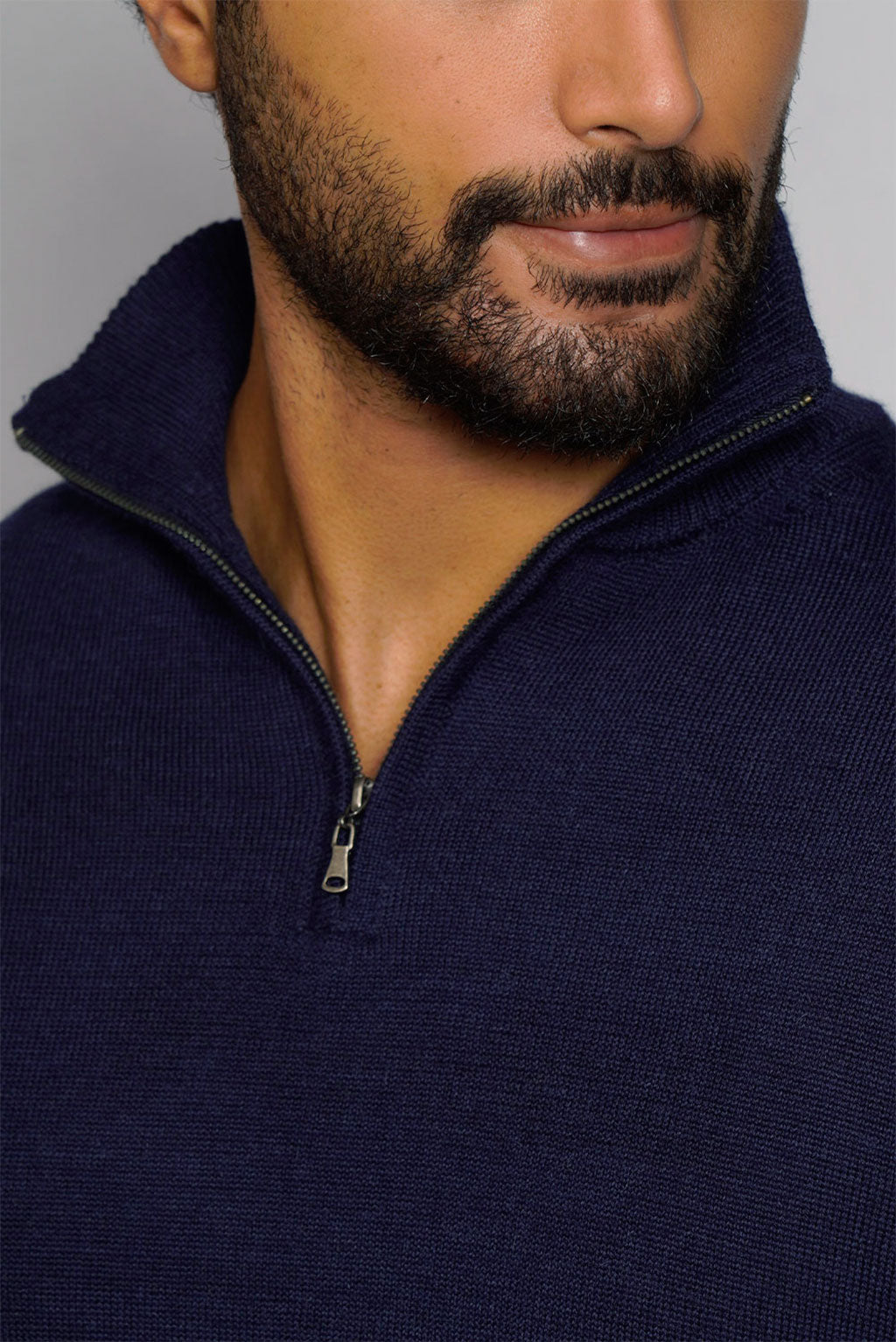 Introducing our Men's Royal Alpaca Half-Zip Sweater. Crafted with the finest grade of Alpaca fabric, it promises an unparalleled blend of warmth, comfort, and durability. Designed for versatility and year-round wear. It offers comfort and sophistication, making it a must-have addition to any gentleman's wardrobe.