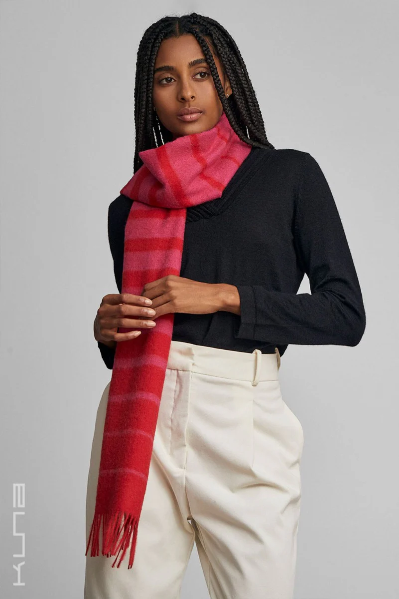 Crafted from the finest baby alpaca fiber, the Tadeo Baby Alpaca Scarf combines softness and style and effortlessly elevates any ensemble while providing cozy warmth. The dual-tone design and the horizontal stripes, create a serene and sophisticated look. Delicate fringes adorn the scarf’s ends, adding a classic touch.