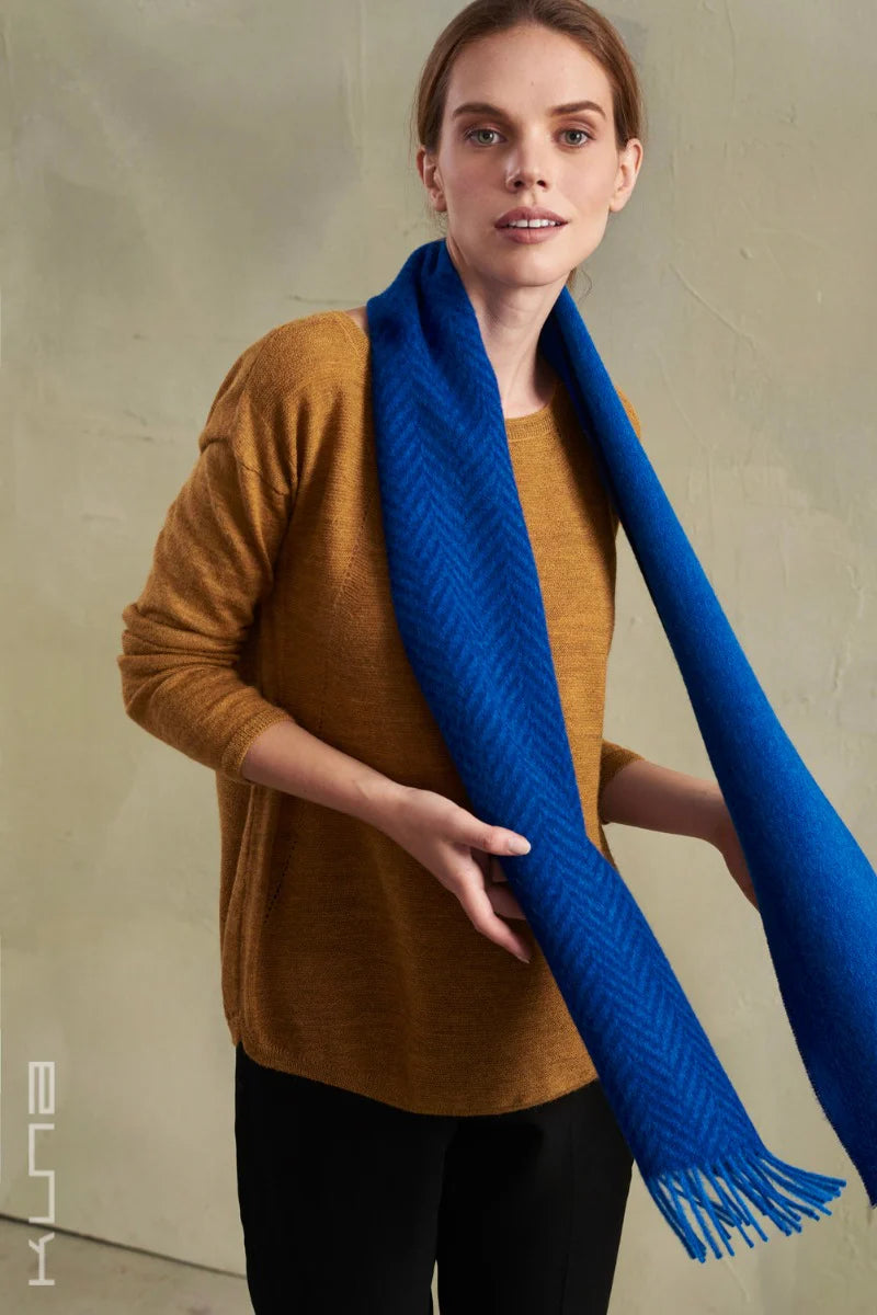Luxurious Baby Alpaca & Wool Scarf in a unique pattern with detail above the fringes. The perfect complement to stand out on any occasion.